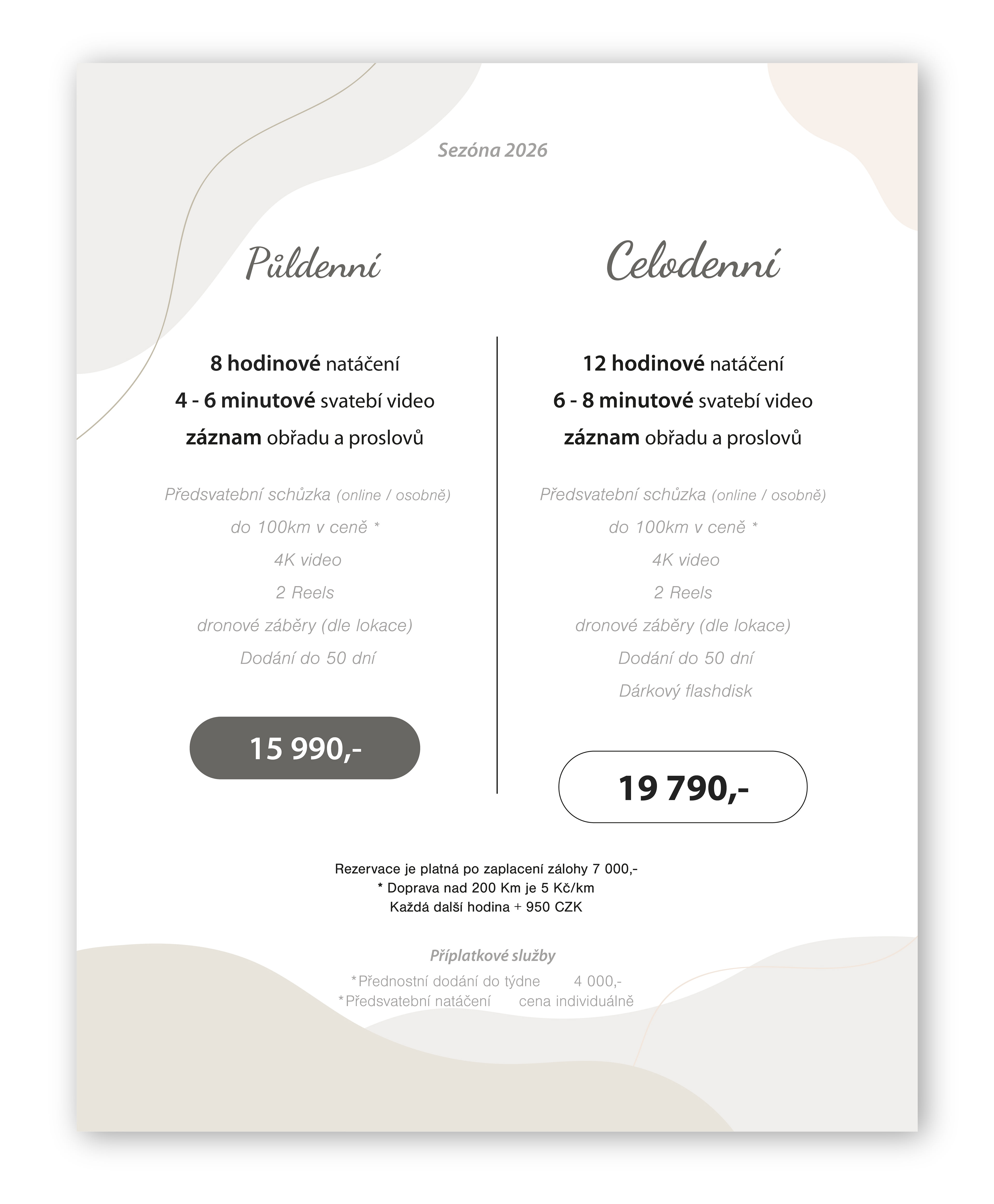 Rezervace je platná po zaplacení zálohy 7 000,- CZK